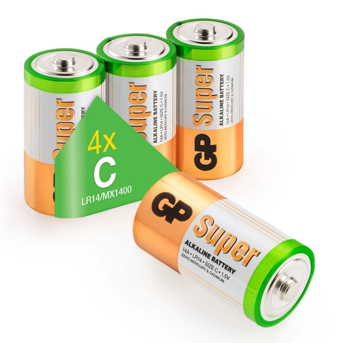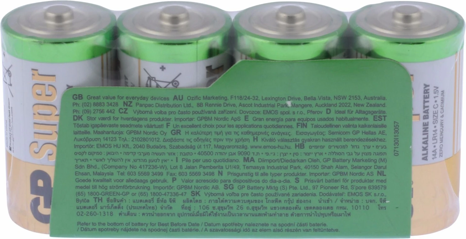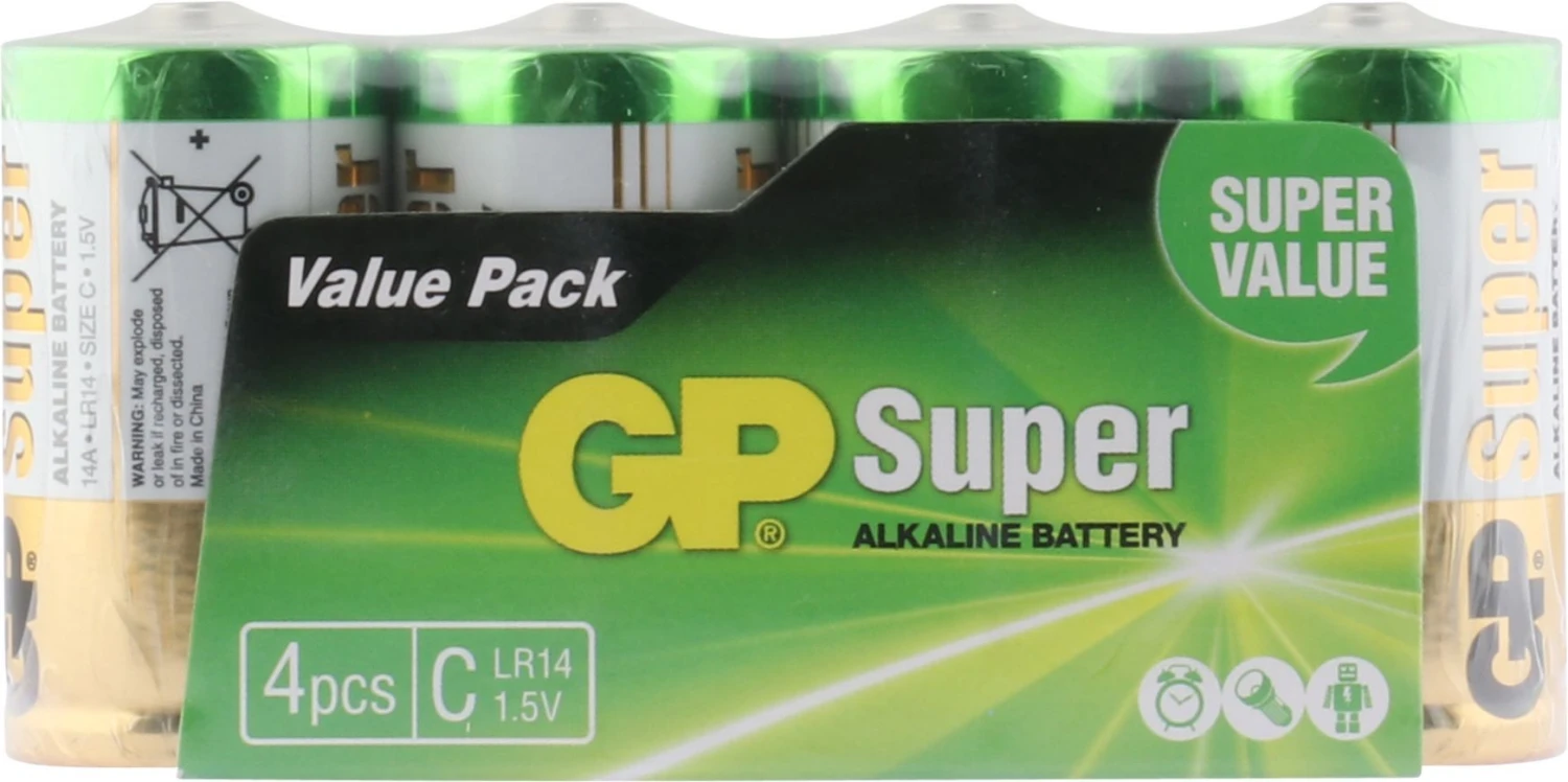 Speciaal ontworpen om perfect te presteren in draagbare elektronica die je dagelijks gebruikt: GP Super Alkaline. De moderne standaard in batterijen. Gemaakt om je nooit in de steek te laten. De C batterij staat ook bekend als Engelse staaf of baby batterij. De ideale krachtbron voor zaklampen, meetapparatuur en speelgoed. Waarom ‘Super’? Omdat deze lijn alkaline batterijen van GP uitblinkt op alle fronten. Niet alleen als het gaat om de lange gebruiksduur; ook als het gaat om de houdbaarheid, die tot maar liefst tien jaar kan bedragen. Verpakking met vier stuks.
